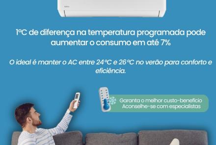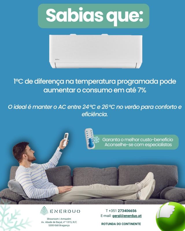 Sabias que 30 Jul 2025 1º C de diferença na temperatura programada pode aumentar o consumo em até 7%O ideal é manter o AC entre 24º e 26º no Verão para conforto e eficiência.